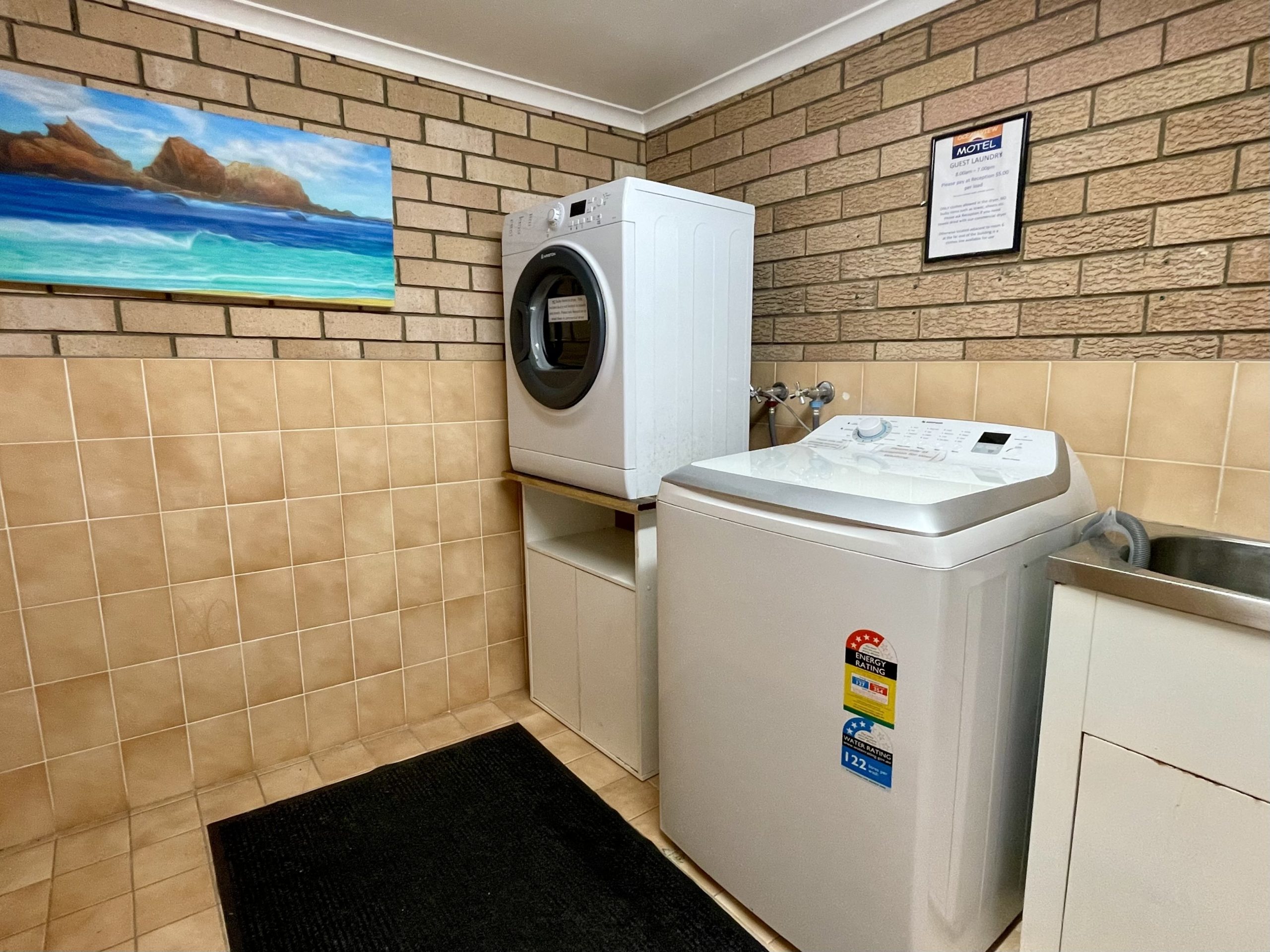 Each of our rooms comes with one free car parking space. Guests with larger vehicles (eg. trucks, long vans, trailers) are required to park on the verge.
